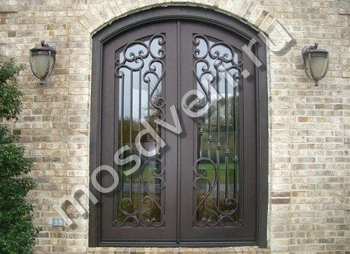 Для изготовления таких дверей на заказ используются различные материалы, но самым надежным признан металл. Железные изделия обладают высокими прочностными характеристиками и долговечностью. В зависимости от габаритов проема металлические арочные двери могут быть одно- или двустворчатыми. Существует три вида стальных конструкций:
