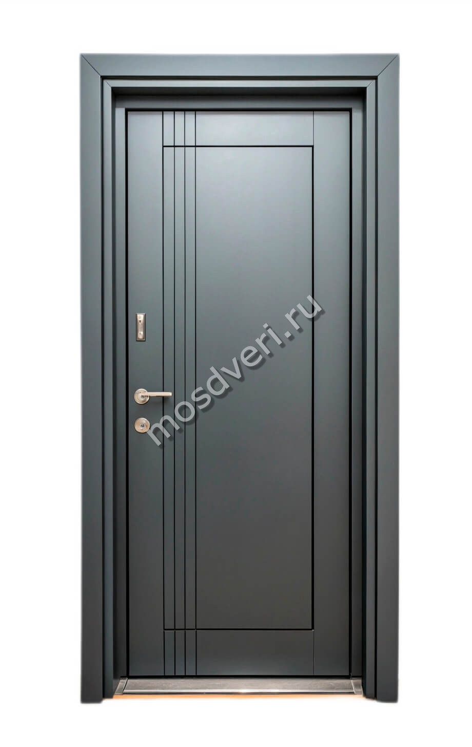 Серая красивая входная дверь в квартиру КДД-023 — совмещает современный дизайн и высокую надёжность.