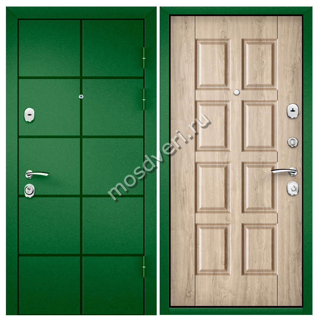 Зеленая входная дверь в квартиру ZVD-03 — совмещает современный дизайн и максимальную защиту.