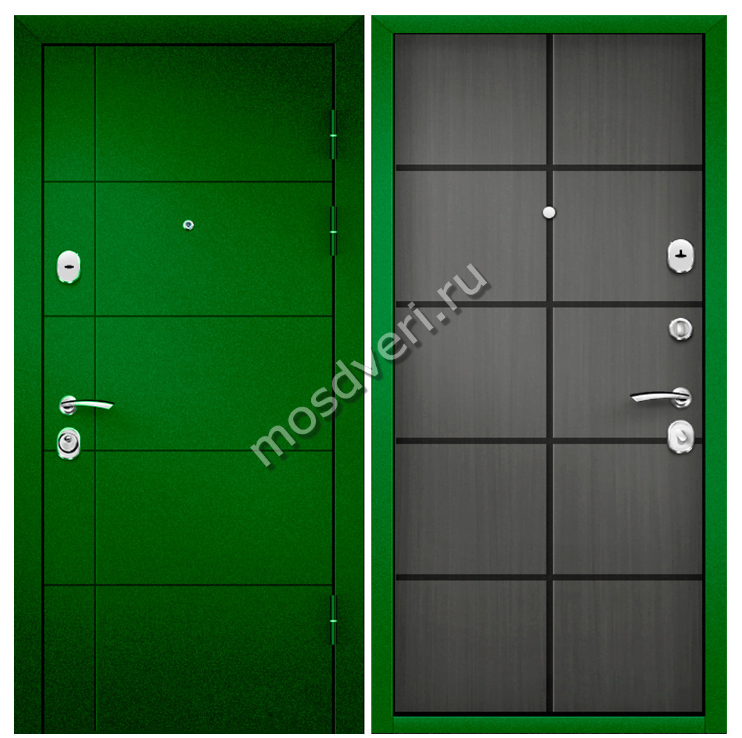 Зеленая входная дверь в квартиру ZVD-13 — купите уже сегодня! Позвоните нам, и получите бесплатную консультацию уже сегодня. Выезд специалиста — в удобное для вас время!